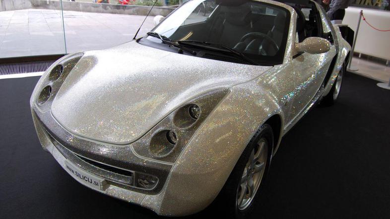 Na 5. Auto Motor Show prireditvi v Ljubljani je bil javnosti predstavljen tudi avtomobil smart roadster, prevlečen s 300.000 kristali Swarovski.