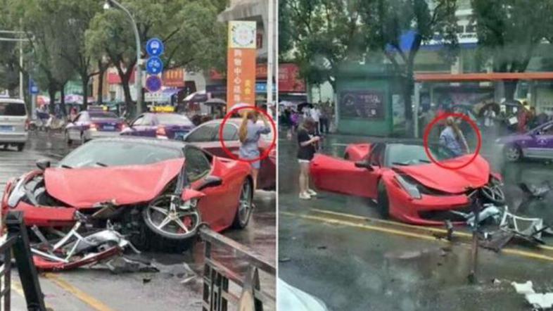 Tako, ko je prevzela avtomobil (tuji mediji namigujejo, da je bil njen mož na poslovni poti) je voznica povsem uničila ferrari 458 italia, s katerim se je zaletela v zaščitno ogrado, zatem pa še v BMW, ki je pripeljal nasproti. Za avtomobil je neznani lastnik na Kitajskem odštel okoli 330 tisoč evrov. V nesreči na srečo nihče ni bil poškodovan.
