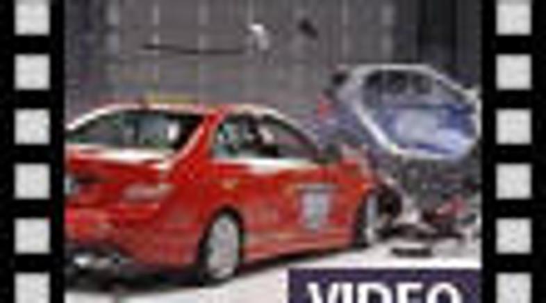 Video spodaj prikazuje trčenje mercedesa razreda C in malega smarta fortwo. Čeprav je bilo že