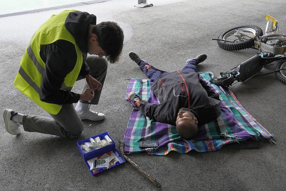 Predstavnik Rdečega križa Matic Slapšak pravi, da vsako leto pripravijo realistični scenarij prometne nesreče. Letos so se odločili za scenarij trka kolesa z motorjem in električnega skiroja. Takšne nesreče so na cestah zelo pogoste in imajo lahko hude posledice.