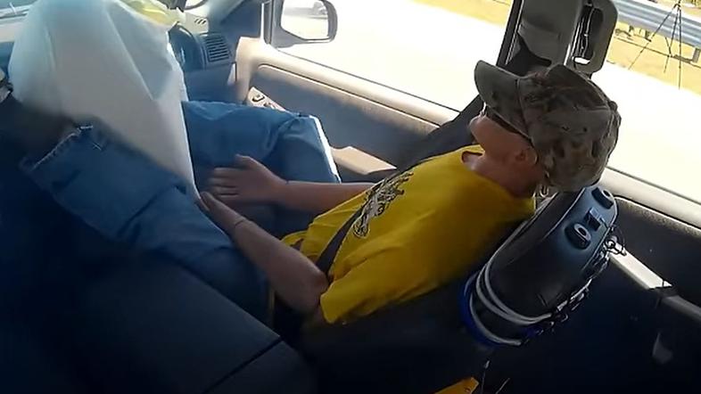 Kako nevarno je imeti noge na armaturni plošči, pa prikazuje tudi videoposnetek s testno lutko. Nujno ga poglejte.