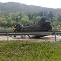 Prometna nesreča Zaradi oljnega madeža pristala na strehi Na štajerski avtocesti, natančneje pri Blagovici, se je zgodila nenavadna nesreča. Voznica vojaškega vozila naj bi zara…