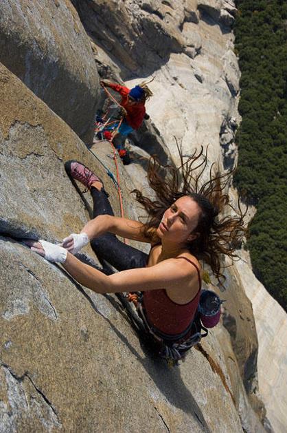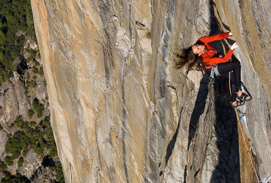 Na fotografiji je Steph Davis, odlična ameriška plezalka. Znana je po prostih vzponih v El Capitanu,