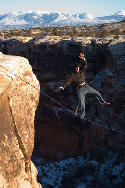 Dean Potter spada med največje ekstremiste. S tovrstno hojo po vrvi se ukvarja praktično vsak dan. J