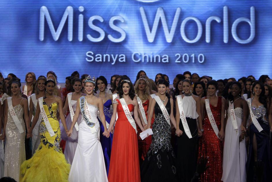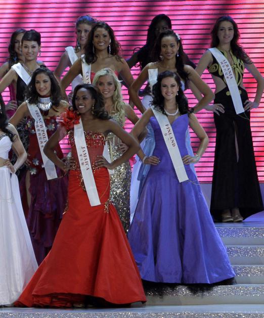 Miss sveta Alexandria Mills v družbi prve spremljevalke Emme Wareus iz Bocvane in druge spremljevalk