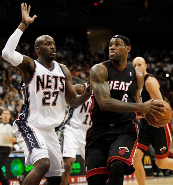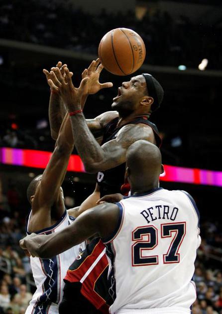 LeBron James, Derrick Favors in Johan Petro.