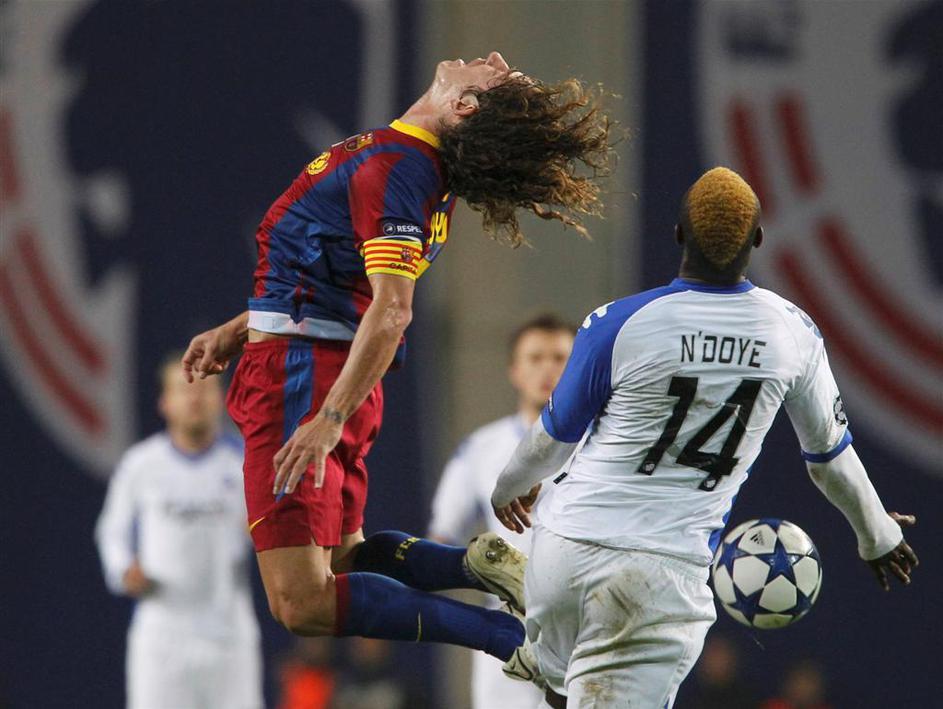 (Kobenhaven : Barcelona 1:1) Dame N'Doye in Carles Puyol