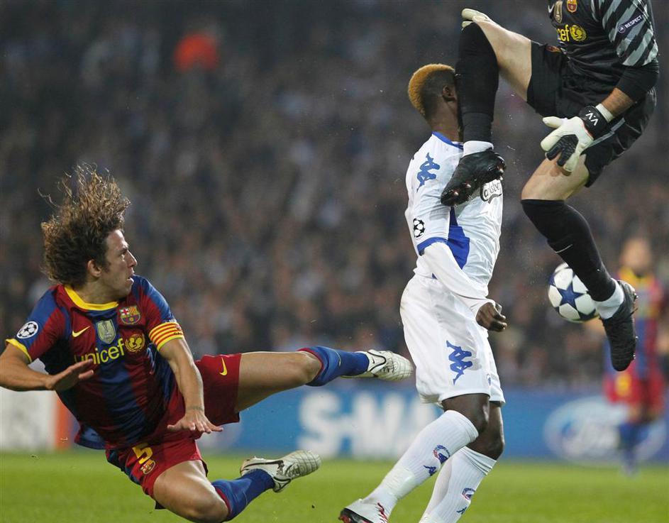 (Kobenhaven : Barcelona 1:1) Dame N'Doye, Victor Valdes in Carles Puyol