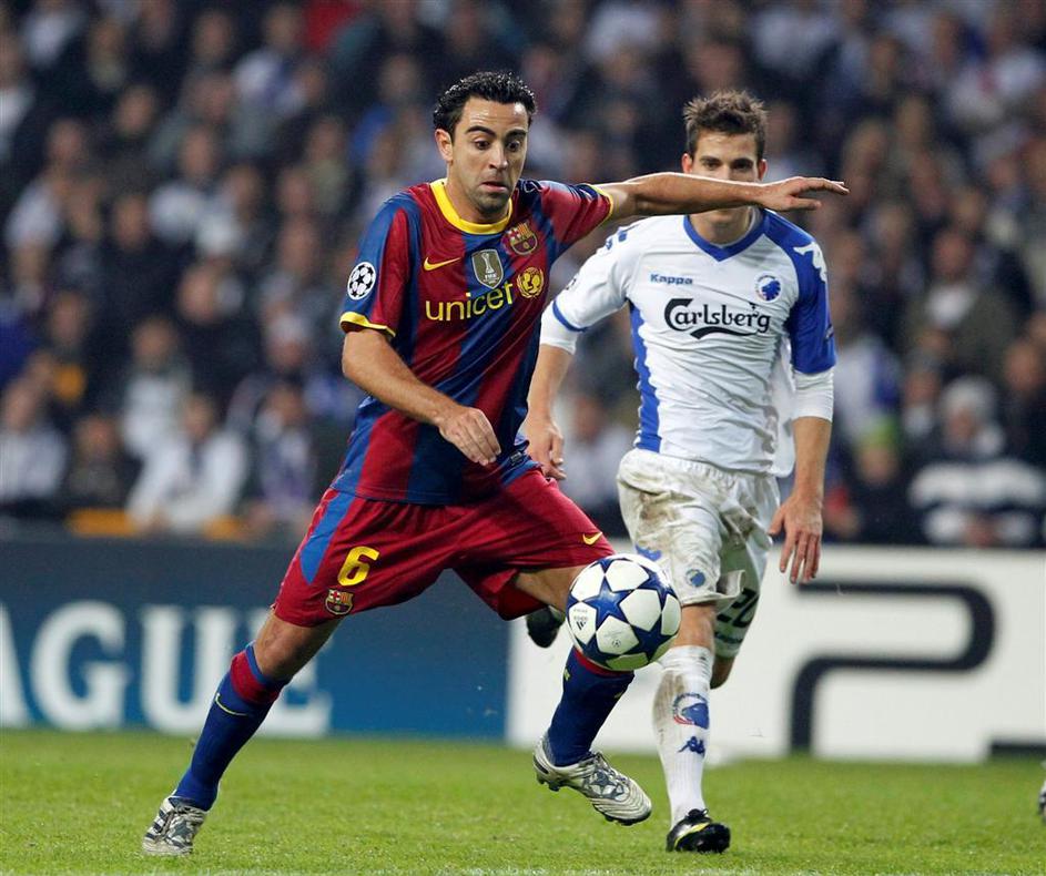 (Kobenhaven : Barcelona 1:1) Xavi Hernandez in Martin Vingaard