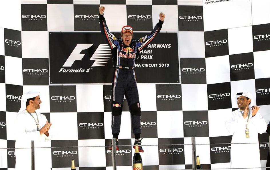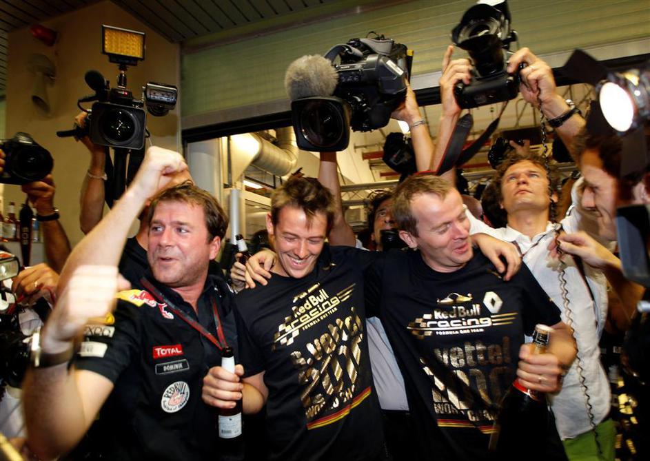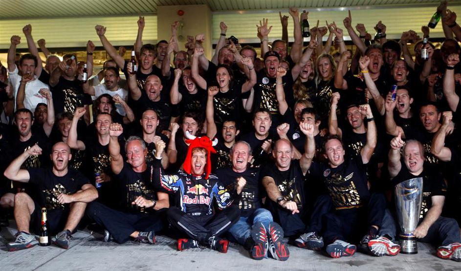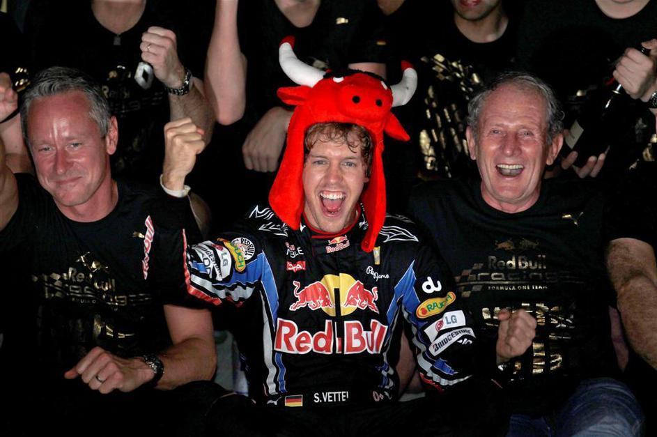 Bikec Vettel se je veselil naslova s svojo ekipo.
