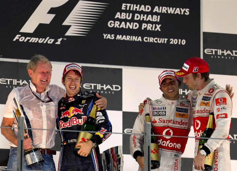 Vettel z gospodom Helmutom Markom, ki si nikakor ni želel, da bi bil prvak Webber.