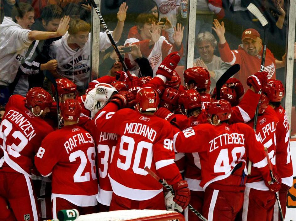 Veselje ob zmagi Red Wingsov.