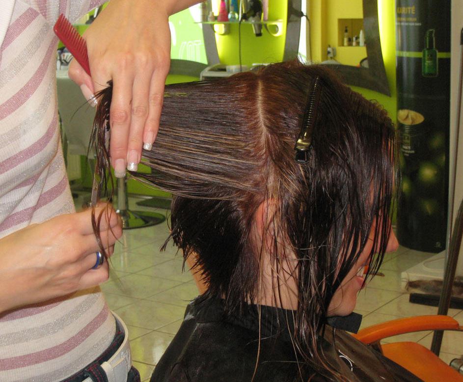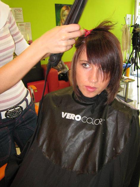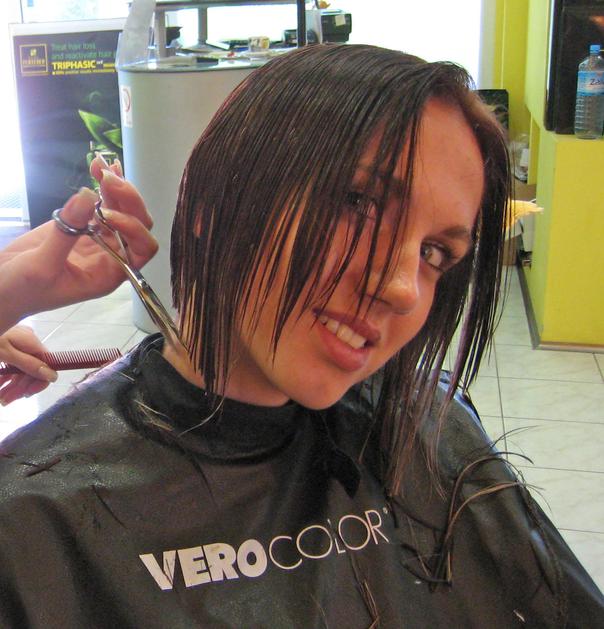 ... je frizerka oblikovala v strogo linijo (paž).