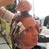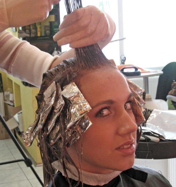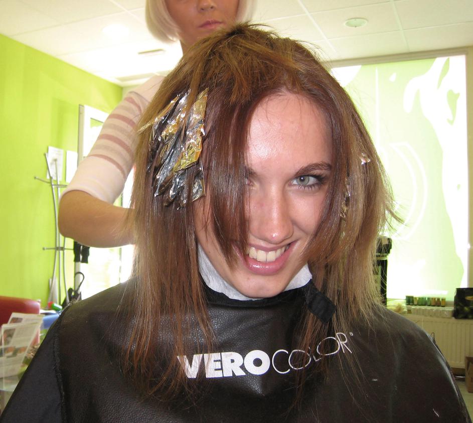 Frizerka je Ani najprej naredila svetla pramena.