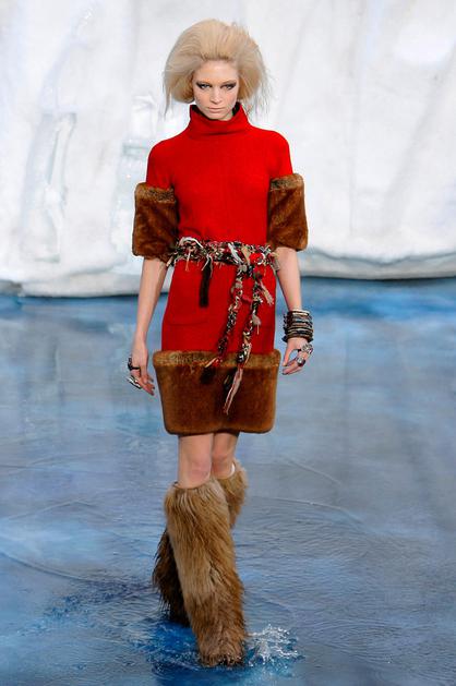 Chanel. Krzno in rdeča barva - nuja za vse modne navdušenke to sezono.