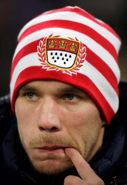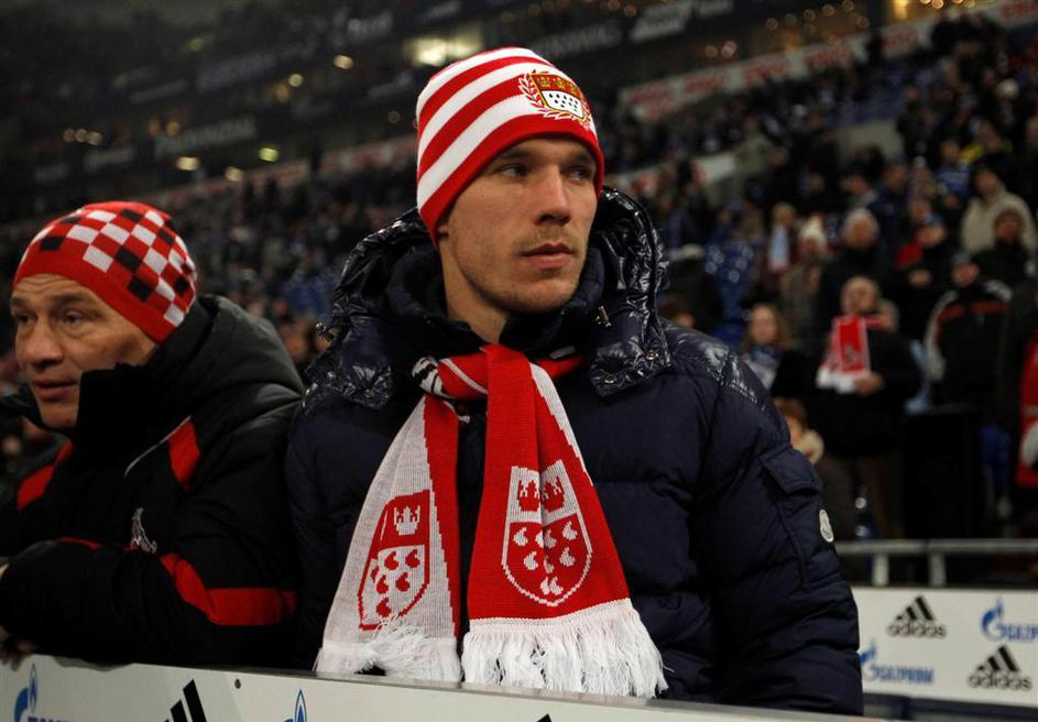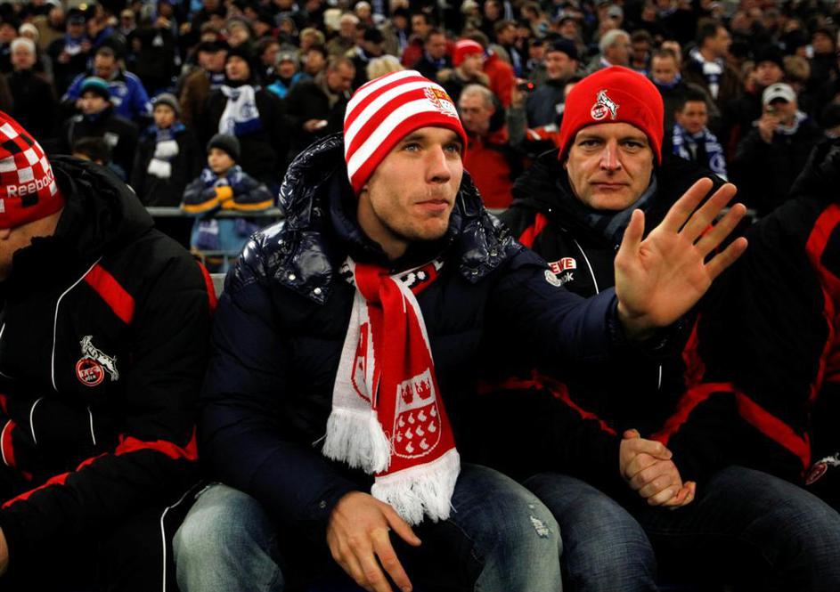 Lukas Podolski na tribuni.