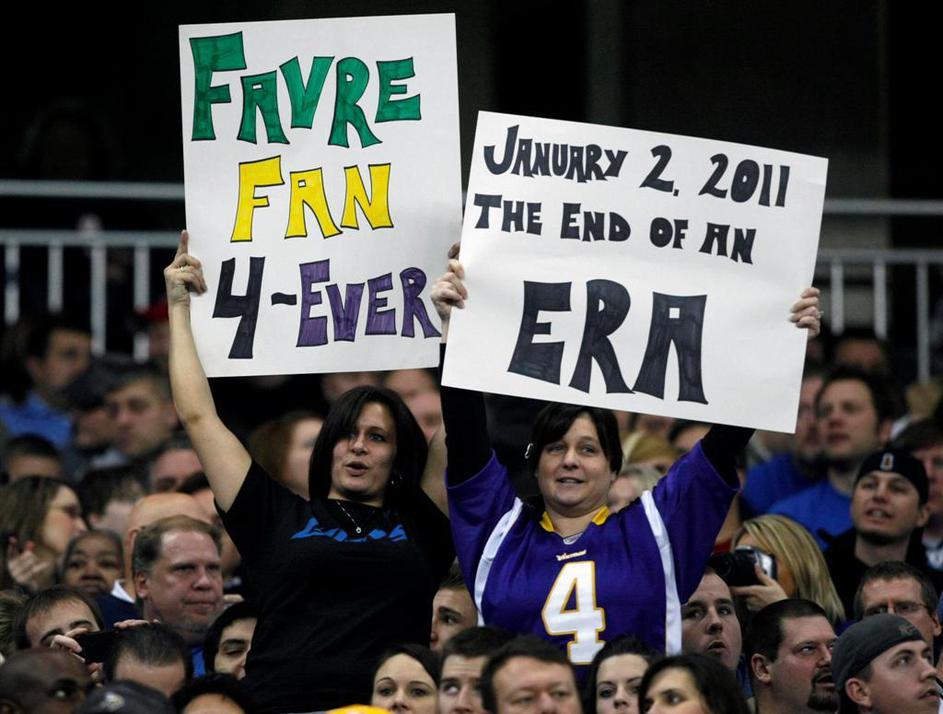 "Navijač Favra za vedno!" "2. januar, konec neke ere!" Brett Favre je na klopi za poškodovane četrti