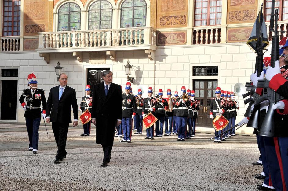 Po uradnem sprejemu z vojaškimi častmi sta se slovenski predsednik in monaški knez zadržala v pogovo