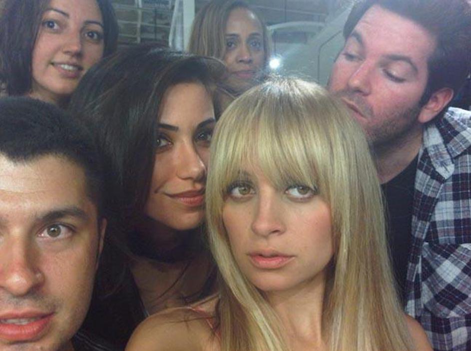 Nicole Richie s prijatelji pozira pred ogledalom.