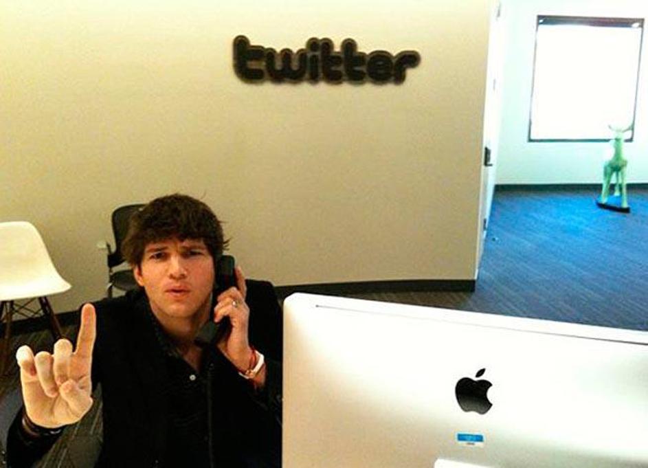Zagrizeni "twitteraš" Ashton Kutcher v poslovnih prostorih podjetja.