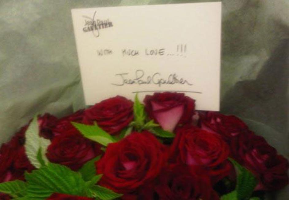 Dita Von Teese je ponosno razkazovala rože, ki jih je prejela od modne hiše Jean Paul Gaultier.