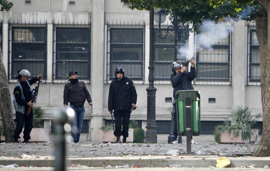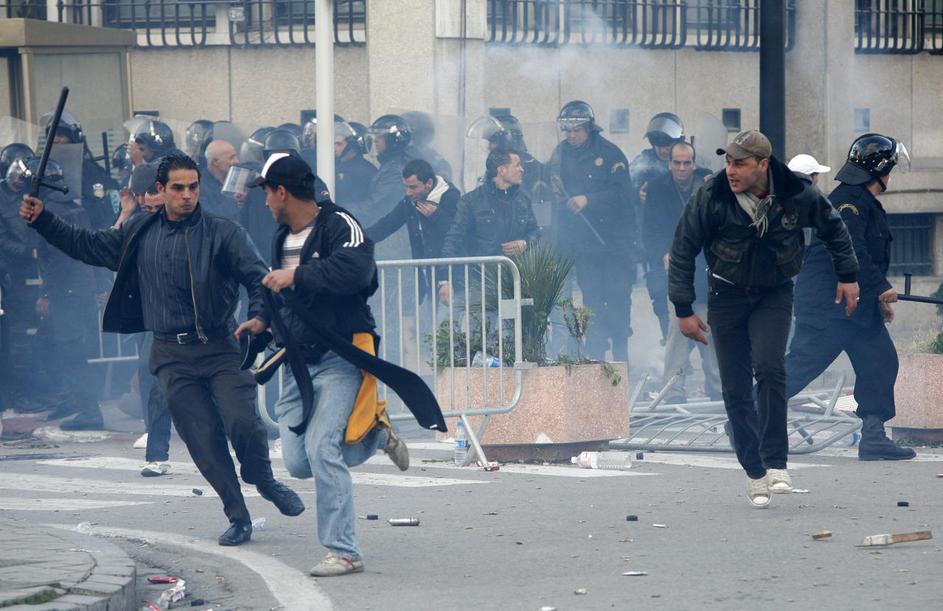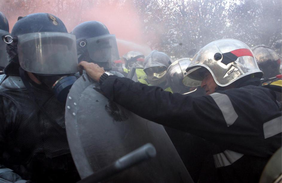 Spopad policije in gasilcev med protivladnimi protesti novembra 2006 v Parizu.