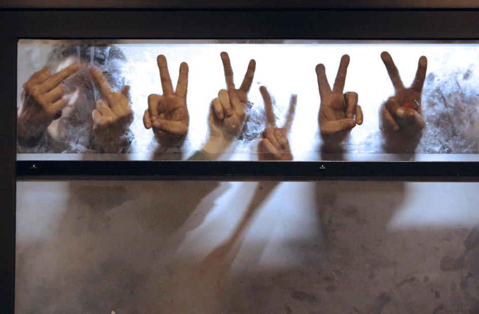 Aretirani protestniki v policijskem avtobusu med pariškimi demonstracijami jeseni 2010.