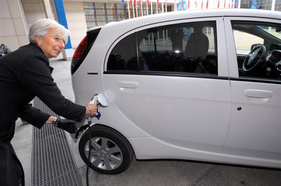 Francoska finančna ministrica Christine Lagarde se je v Parizu popeljala s povsem električnim avtomo