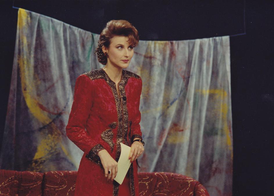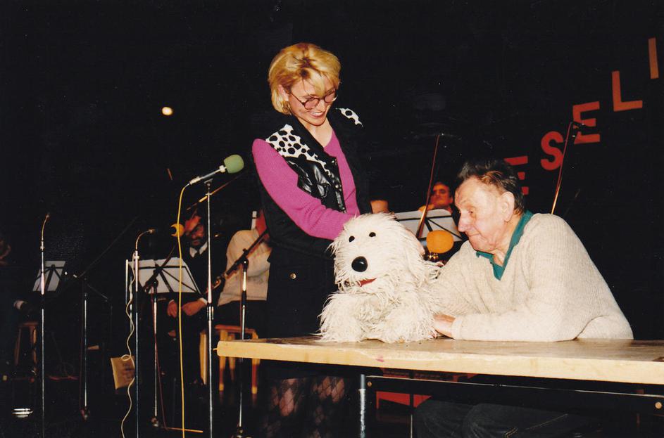 Nataša Bolčina Žgavec pred dvajsetimi leti z Radovednim Tačkom (Nace Simončič).