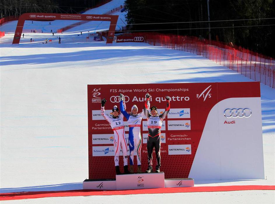 Najboljši trije na superveleslalomu: drugi Reichelt, prvi Innerhofer in tretji K