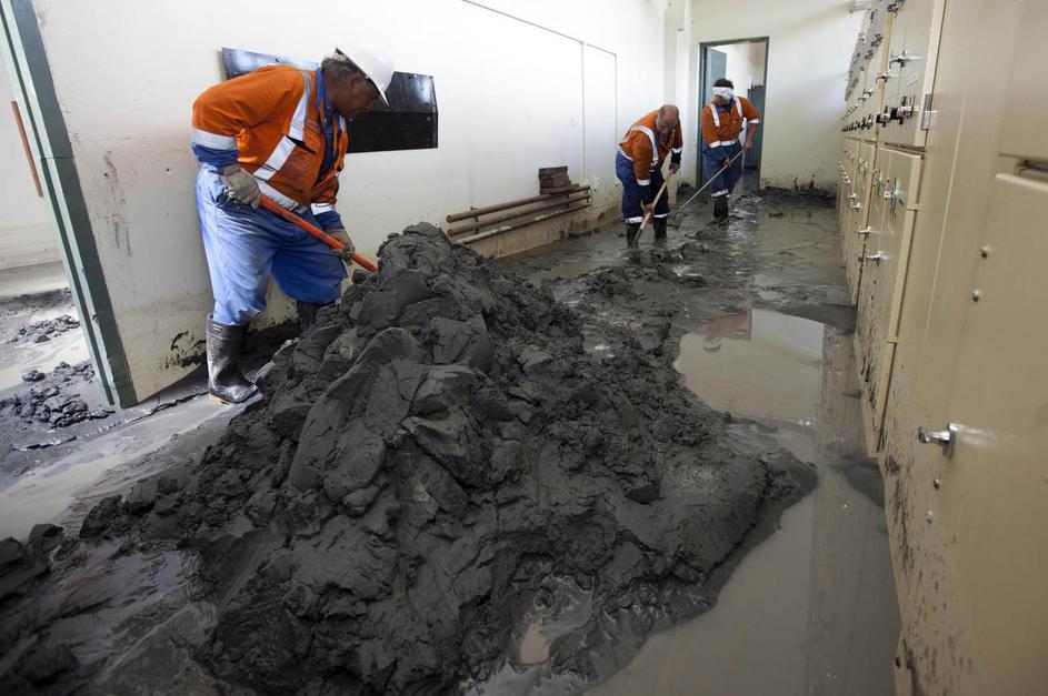 Delavci čistijo podzemno postajo New Brighton v Christchurchu.