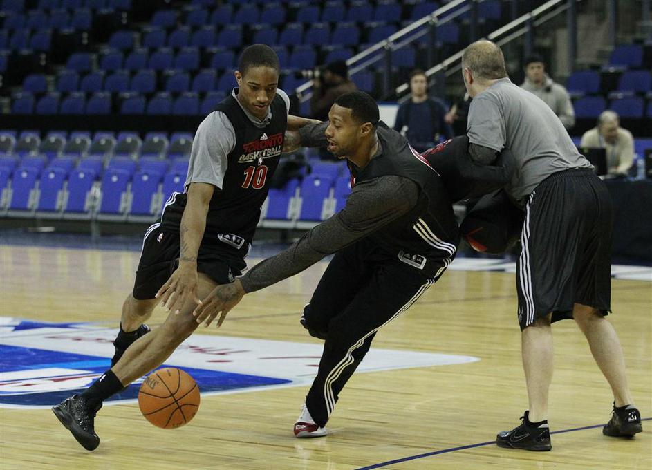 Zvečer so dvorano za trening zasedli še DeMar DeRozan in njegovi Raptorji.