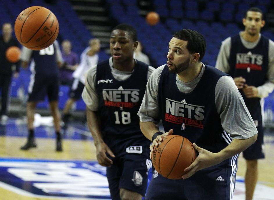 Deron Williams in njegovi novi soigralci na treningu v londonski O2 Areni.