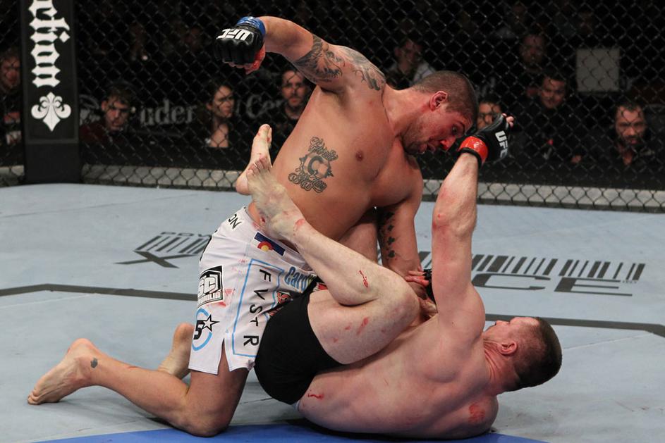 Udarci Brendana Schauba (zgoraj) so bili premočni za Mirka Filipovića (spodaj).