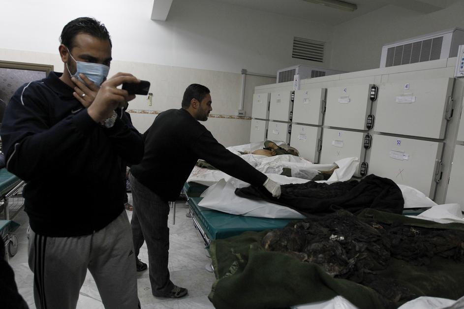 Libijski uradniki so novinarje povabili v bolnišnico v Tripoliju, jim pokazali 15 trupel in dovolili