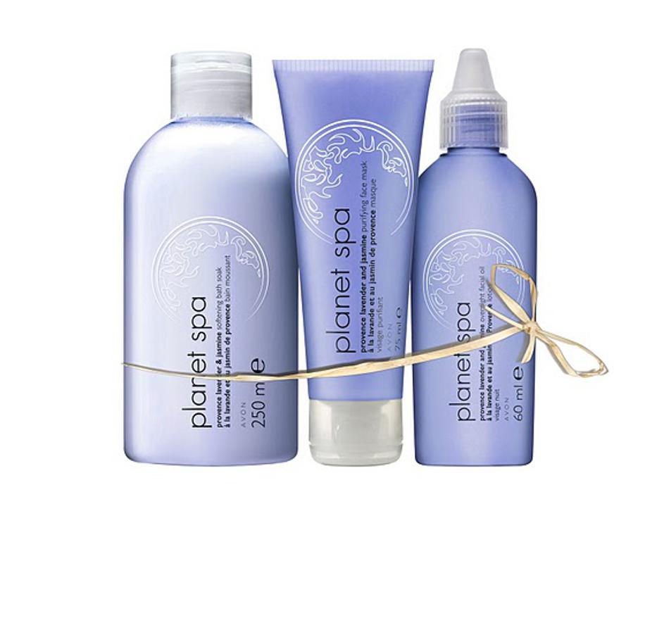 Spa komplet Avon: kopel, 8,90 EUR, maska za obraz, 5,50 EUR, olje za obraz, 8,90 EUR
