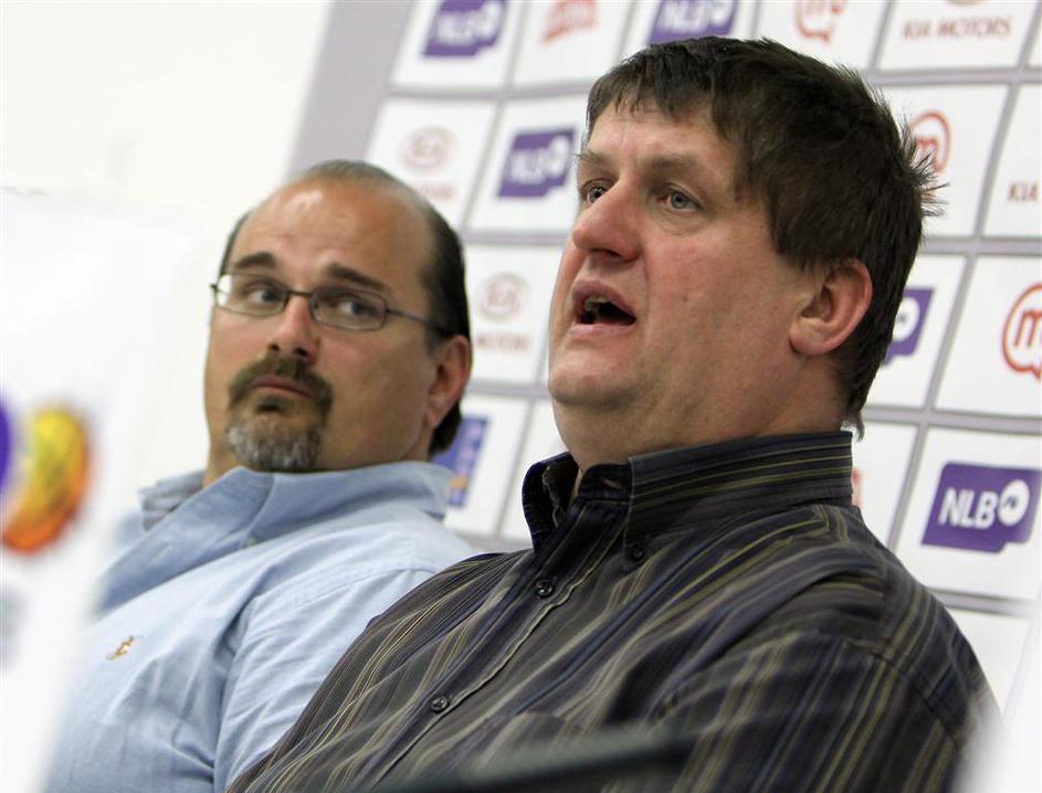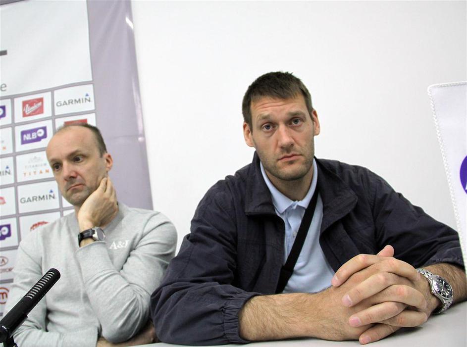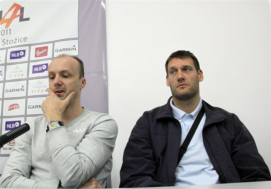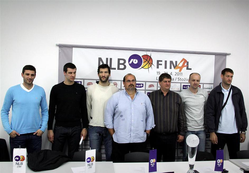 Iz oči v oči – tekmeci za naslov prvaka lige NLB na ponedeljkovi novinarski konferenci.