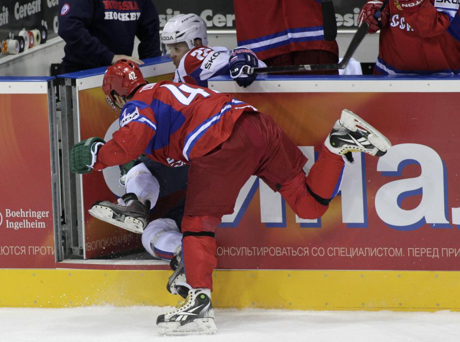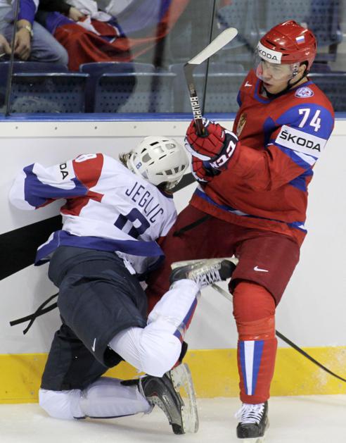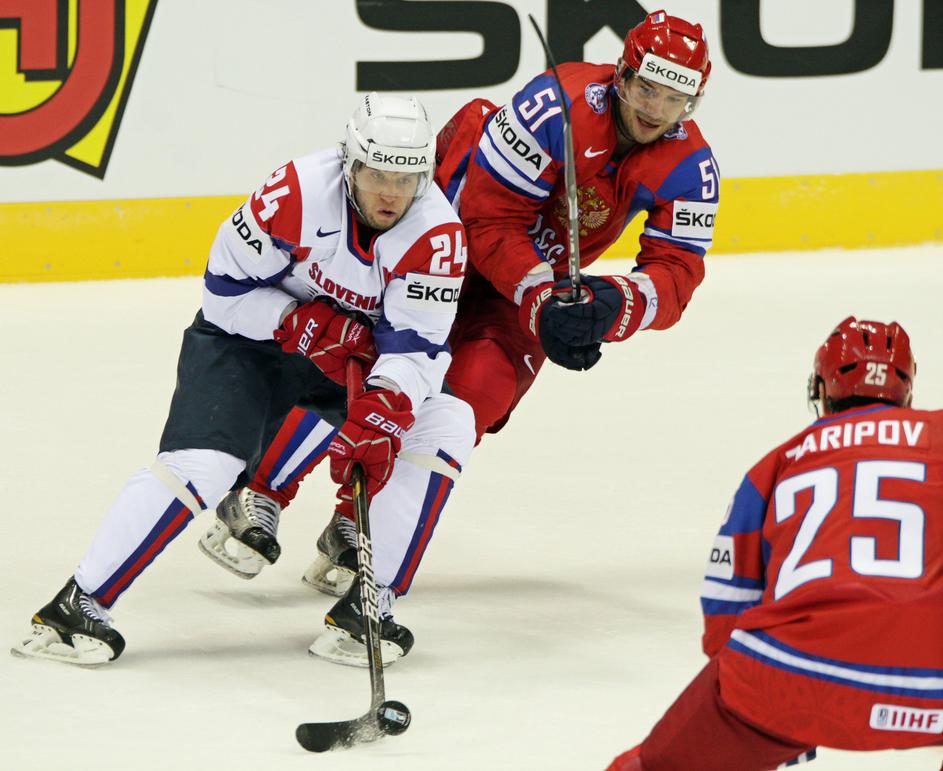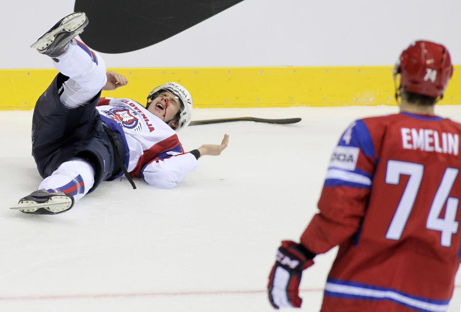 Rusi so igrali zelo umazano. Že v 9. minuti je Aleksej Jemelin takole ostro naletel na Žigo Jegliča