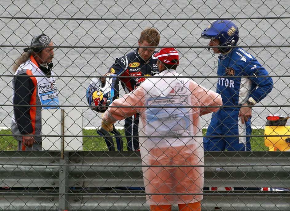 Po nesreči je Vettel svojim mehanikom sporočil: "Oprostite, zadel sem robnik."