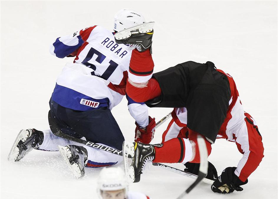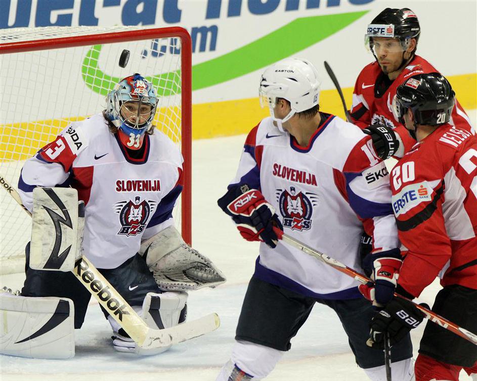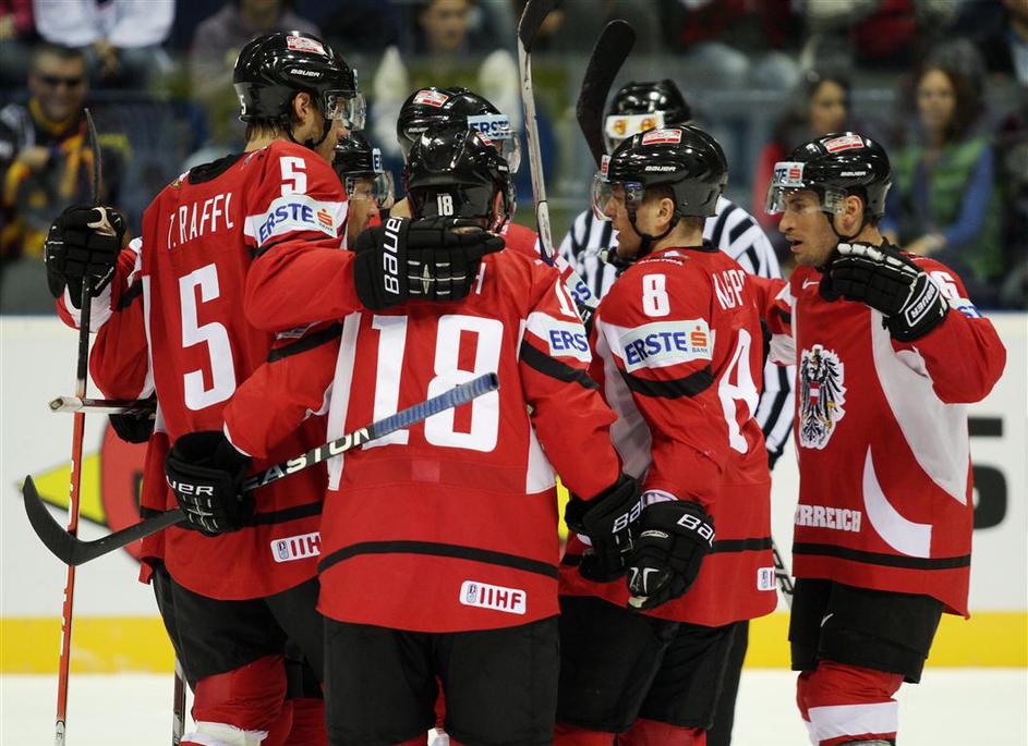 Veselje Avstrijcev, ko so s 3:2 premagali slovenske rise.