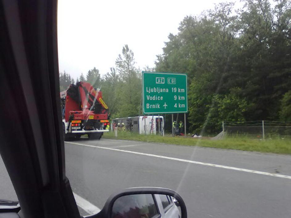 Nesreča avtobusa na gorenjski avtocesti