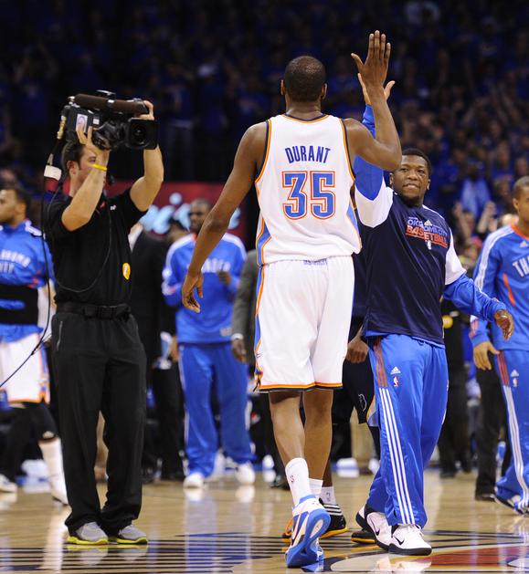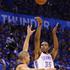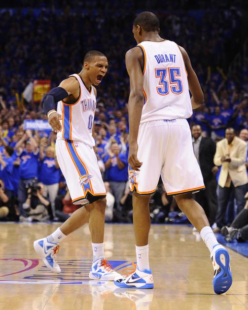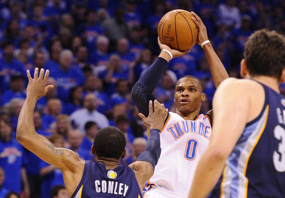 Ob Durantu je bil najzaslužnejši za napredovanje Oklahome še Russell Westbrook, ki je prišel do troj
