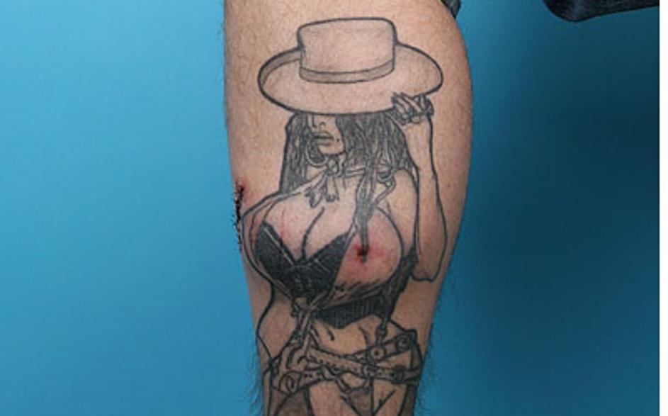 Tetovator Lane Jensen se je odločil za vsadke … na nogi. S tem je izpopolnil tetovažo prsate lepotic