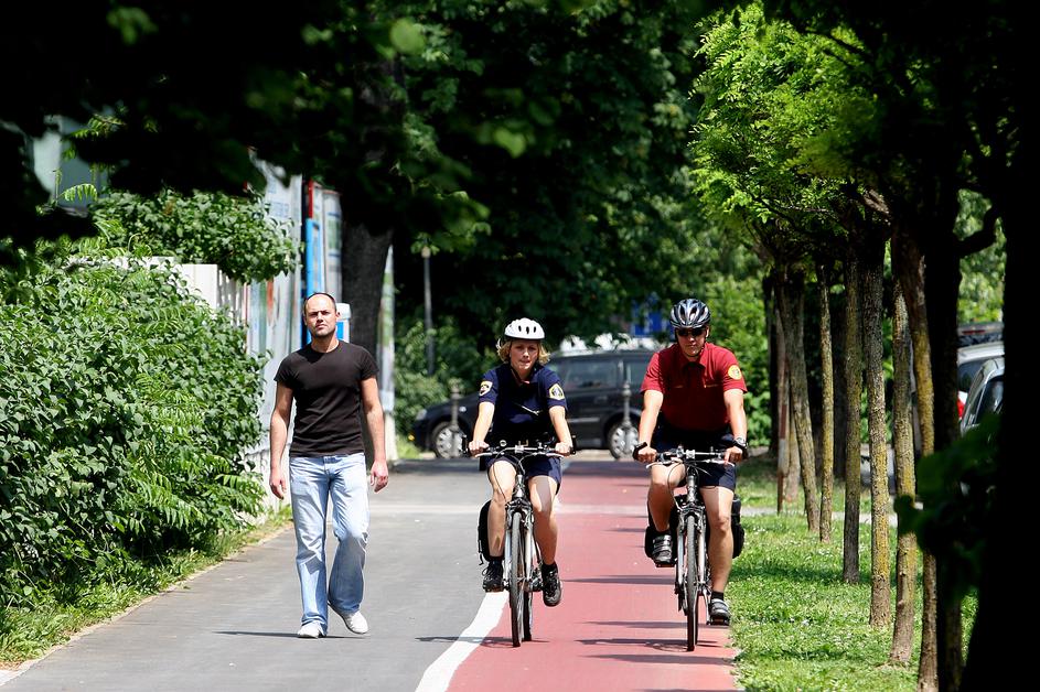 kolo, kolesarjenje, policija, kolesarska steza, kolesar, kolesarka, policist na