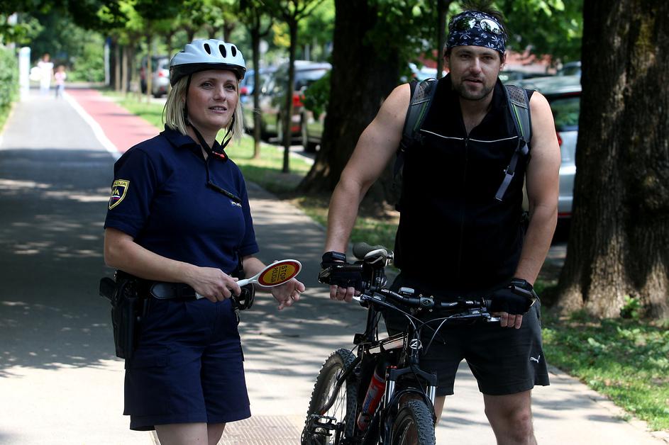 stop policija, loparček, kolo, kolesarjenje, policija, kolesarska steza, kolesar, kolesarka, policist na