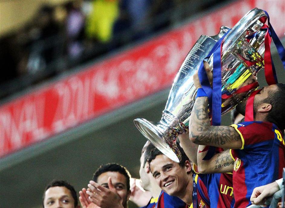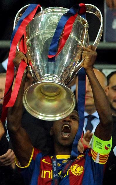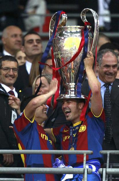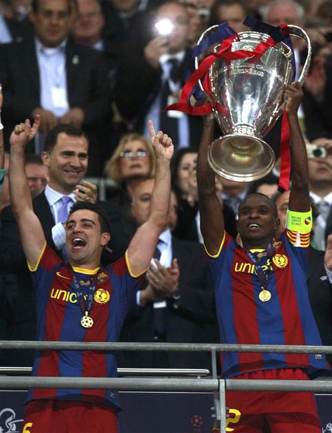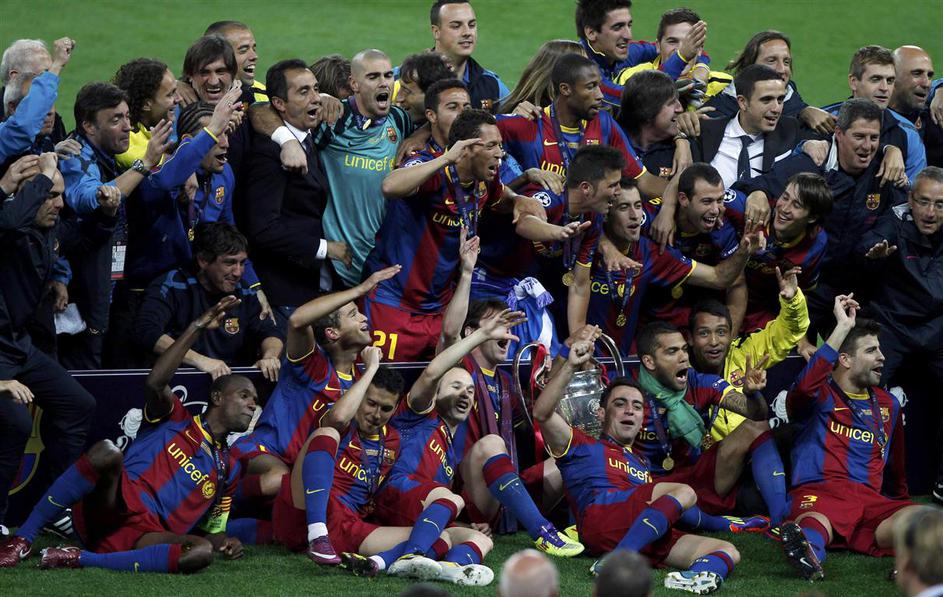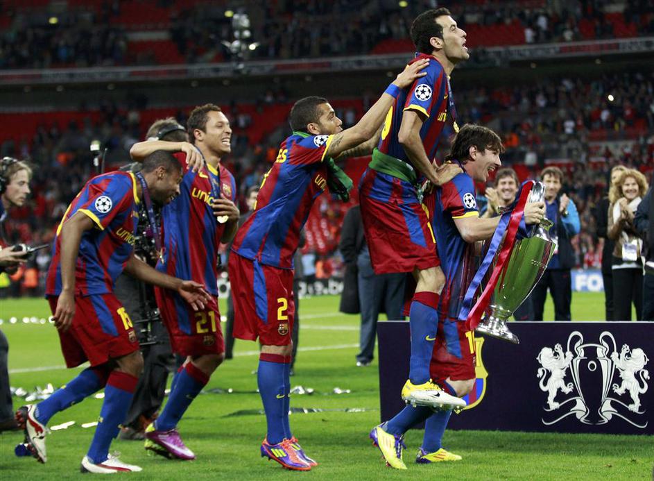 Eric Abidal (desno) je kot kapetan Barcelone dvignil pokal na Wembleyju. (Foto: Reuters Eric Abidal (desno) je kot kapetan Barcelone dvignil pokal na Wembleyju. (Foto: