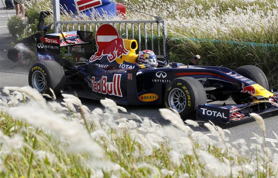 Sebastien Buemi je zadel člana osebja ob progi v japonskem mestu Čiba, vzhodno od Tokia (v ozadju fo Žurnal24