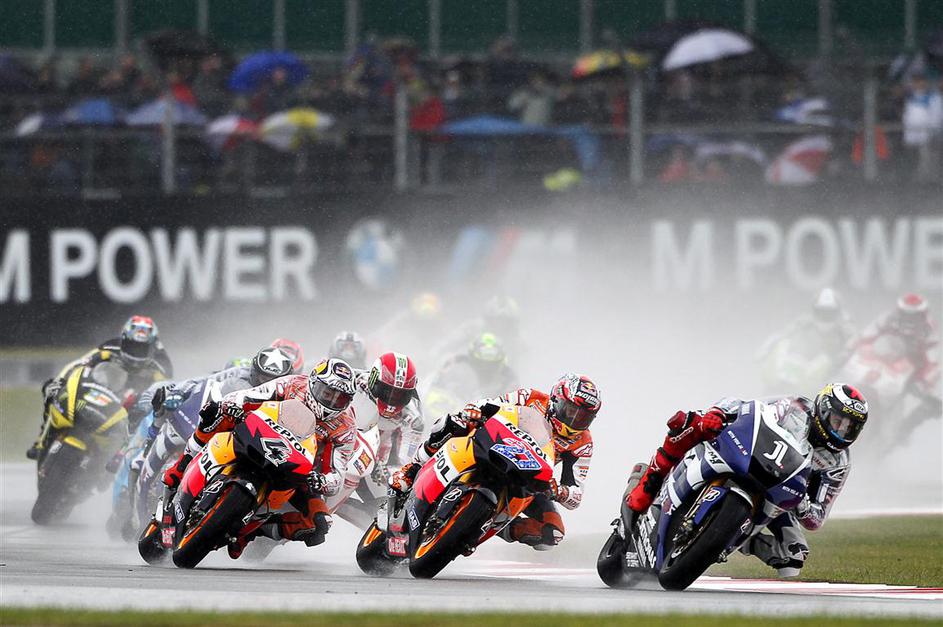Casey Stoner in Andrea Dovizioso (Honda) ter Marco Simocelli (Honda) in Jorge Lorenzo (Yamaha)