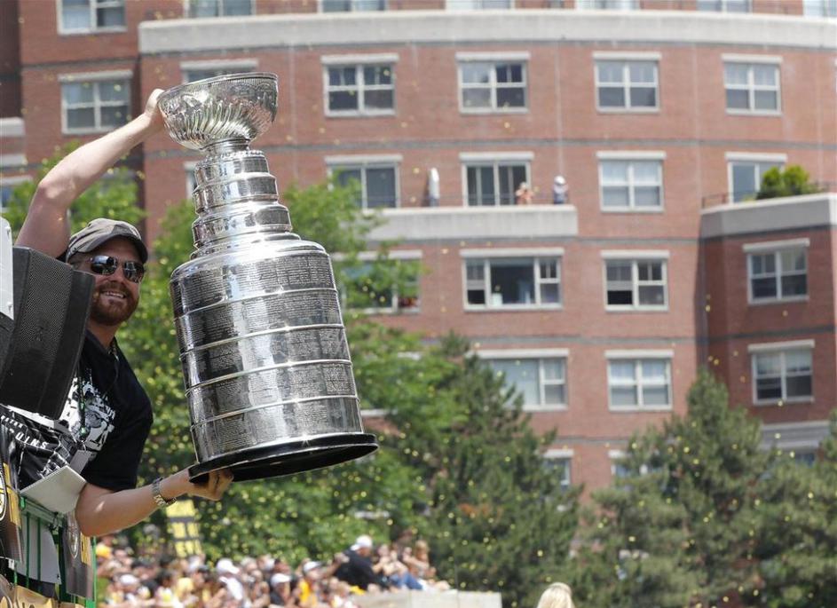 Navijači so na paradi pozdravili Stanleyjev pokal.