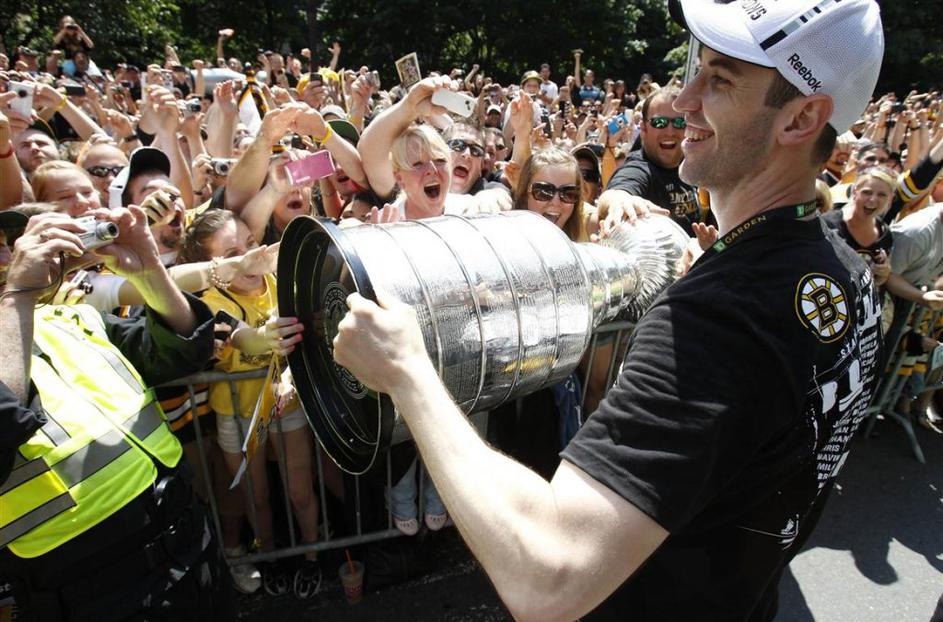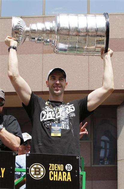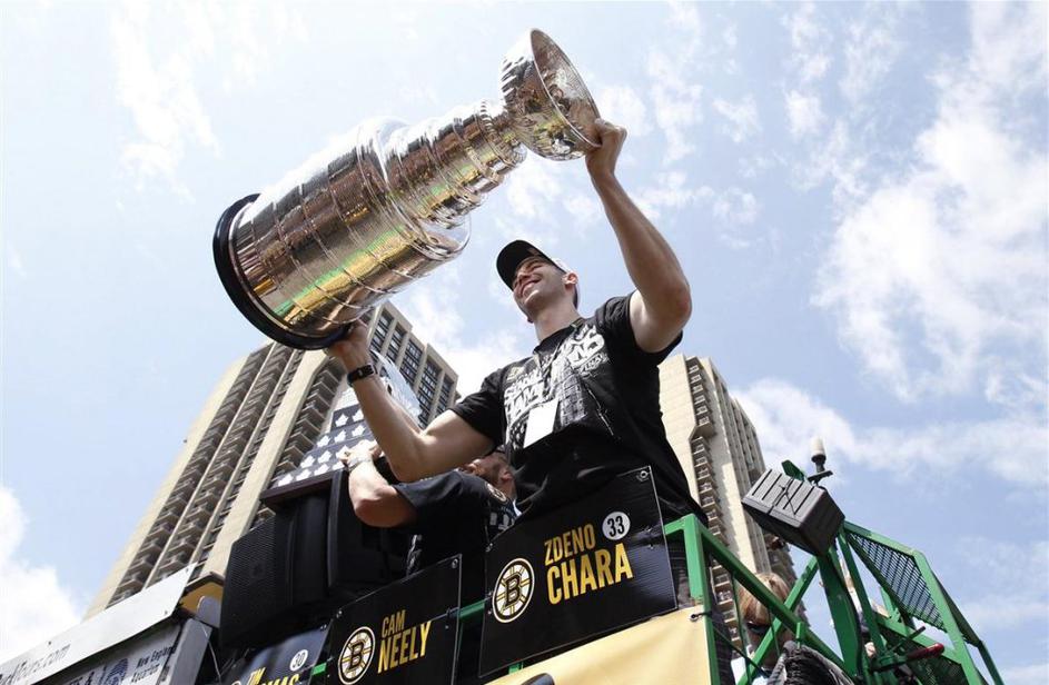 Zdeno Chara na bostonskih ulicah s Stanleyjevim pokalom.